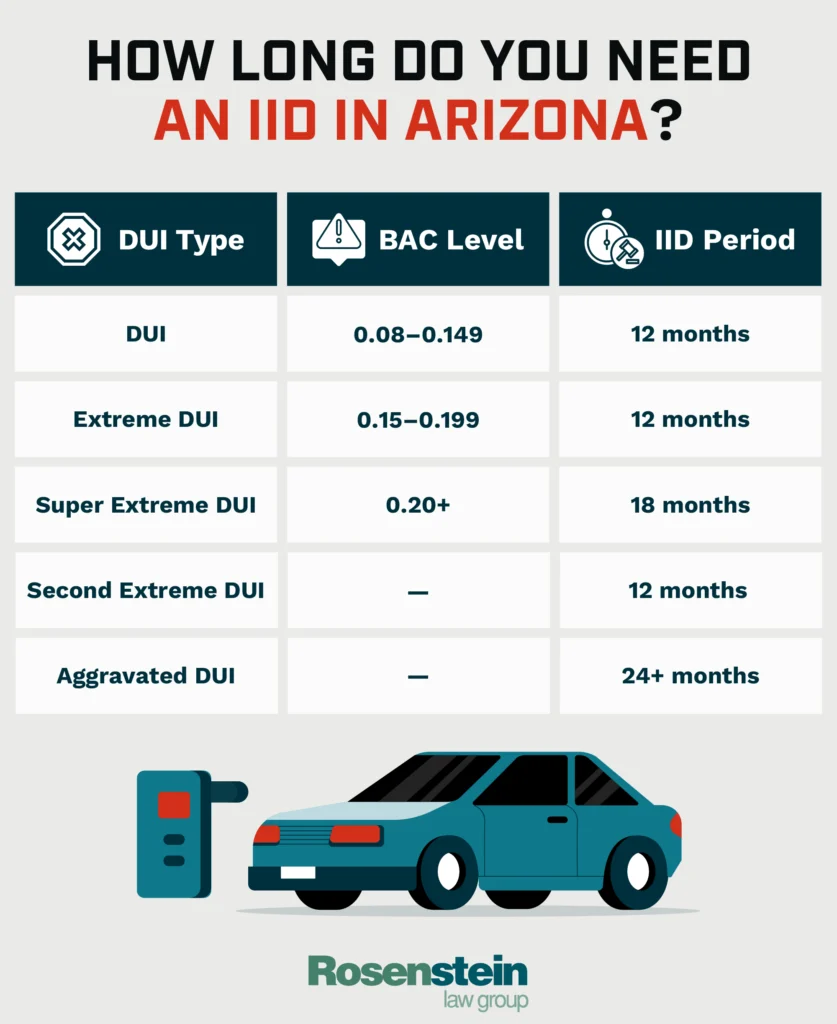 Arizona has some of the toughest drunk driving laws in the United States. For most DUI convictions in Arizona, the statutory minimum IID period is 12 months, with possible reduction in limited circumstances.
